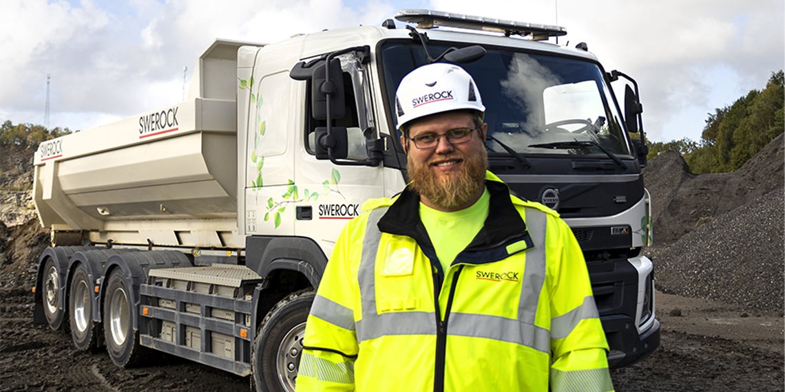 Den 9 september, på Yrkesförarens dag, hyllar vi på Swerock alla yrkesförare. En av våra mest dedikerade chaufförer är Mathias Johansson som har 14 års erfarenhet som chaufför. Till vardags kör han idag en eldriven lastbil i Göteborgs innerstad, och hans resa hit är inspirerande.