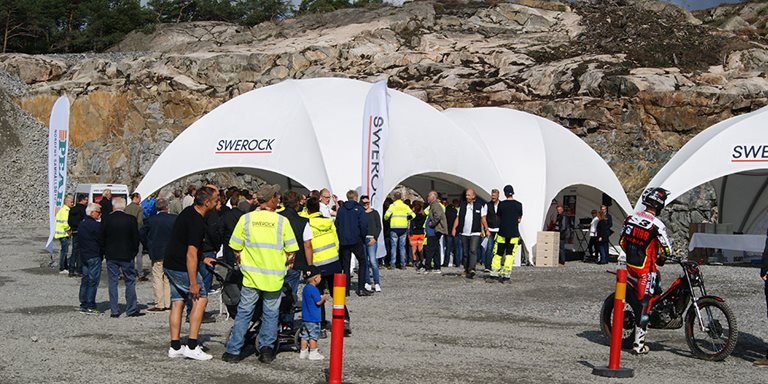 Under gynnsamma förhållanden invigdes Swerocks täkt i Arendal. Ett 170-tal besökare kom för att vara med vid invigningen. De fick bland annat höra Magnus Kårestedt, Göteborgs Hamn och Monica Almefeldt Soldinger, täkthandläggare Swerock berätta lite bakgrundshistoria och om deras tankar kring täkten samt Göteborg Hamns framtida planer.