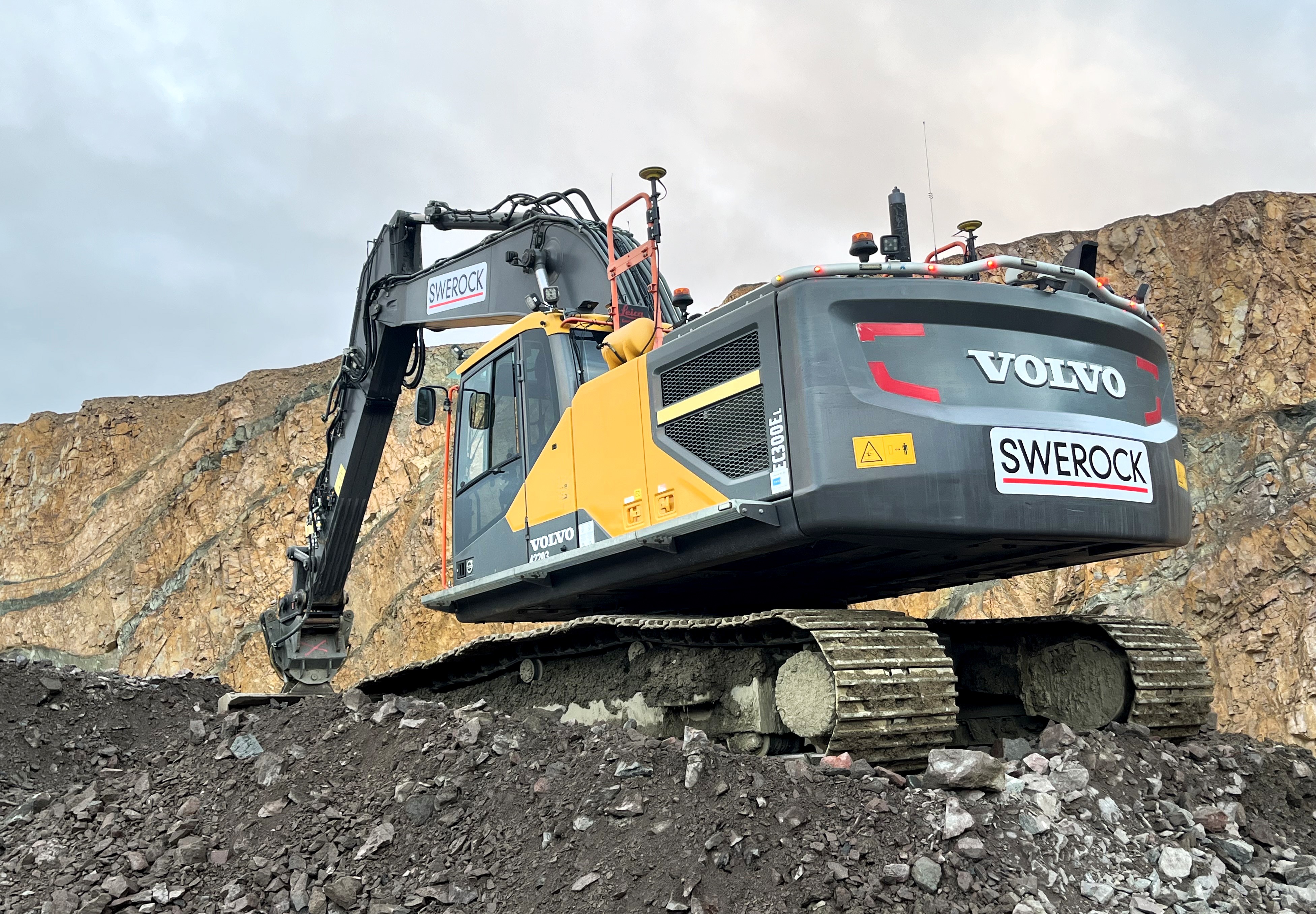 Sedan några veckor tillbaka schaktar Swerock jord och sten med hjälp av en bandschaktare som drivs med elmotorer. Den tekniska lösningen leder till lägre utsläpp av koldioxid.