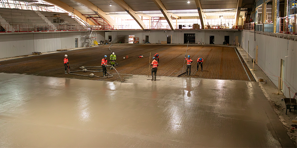 Totalt har cirka 1 600 m3 ECO-Betong levererats till projektet vilket minskade koldioxidutsläppen med 47 ton. Sista gjutningen av isrinken har nu skett och arbetet fortskrider nu vidare med byggnationen.