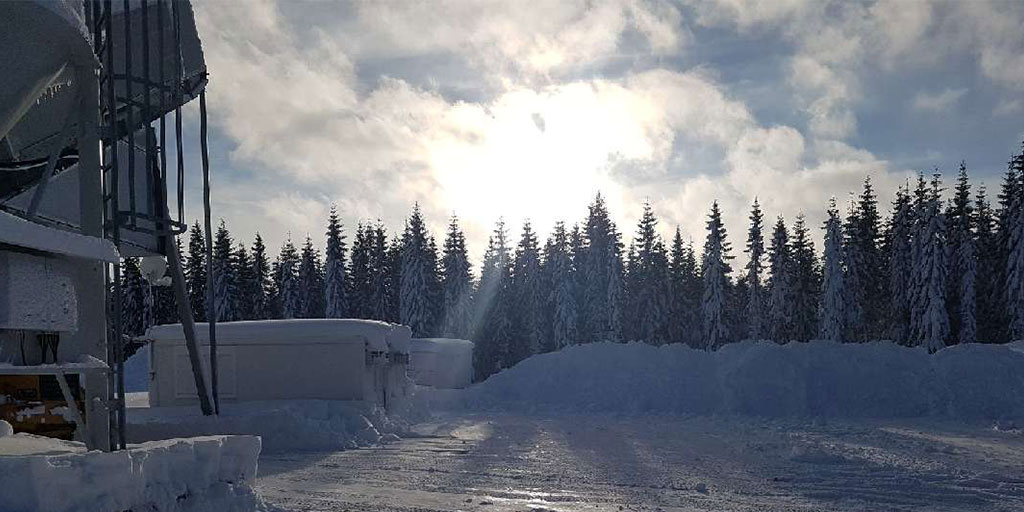 I detta vackra vinterlandskap har det snöröjts och skottats runt vår mobila fabrik i Åskälen.
